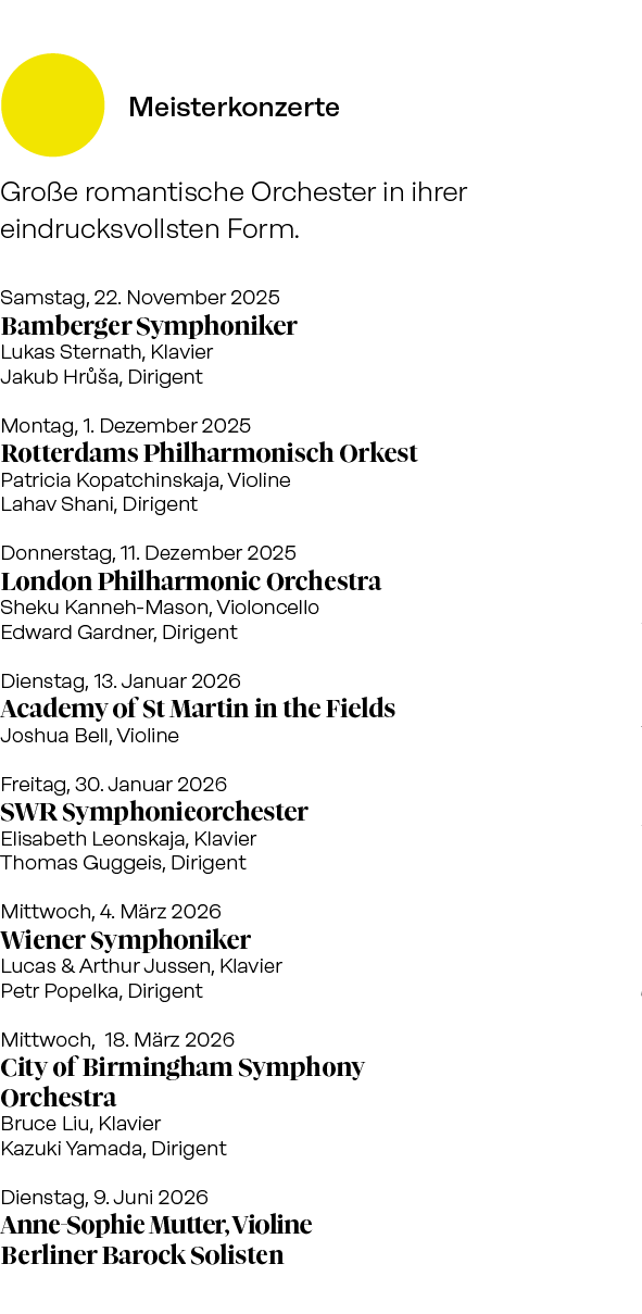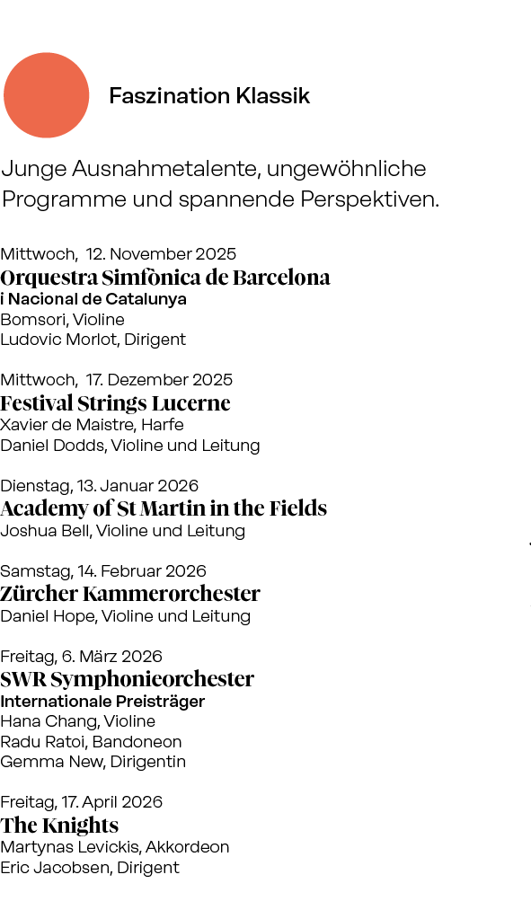Weltklasse-Konzerte zum Preis einer Poké Bowl. Schüler- und Studentenabonnements.